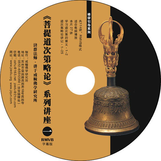 “《菩提道次第略论》系列讲座”是济群法师2004-2005年期间为戒幢佛学研究所学员所讲,包括“学习道次第的意义”2讲和“道次第略论开示”112讲。《略论》虽结构清晰,然文约义丰,初学者难以深入其堂奥。法师在讲述本论过程中,特别侧重从各个环节的核心要领和修行原理进行剖析,使学人在进入每一阶段的学习时能够知其然而知其所以然,能够相互贯通,不至忘失道之整体。 出版 戒幢佛学研究所 《菩提道次第略论》系列讲座下载 注:本格式适合电脑播放。 容量 114讲,RMVB字幕版,4片 包装 塑袋装 助印成本 7元/套 所属类别 修学引导系列 适合人群 四众弟子 出版时间 2007年 存缺情况 结缘中